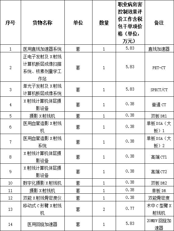 1.1.2效劳内容: 绵阳三江医院项目(一期)职业病危害控制效果评价事情所有事情内容:举行现场验收检测并体例职业病危害放射防护控制效果评价事情报告书,,,,,,协调市卫健部分召开职业病危害控制效果评价事情报告专家审核聚会,,,,,,通过专家评审,,,,,,并最终取得批复。。。。。。详细装备如下: