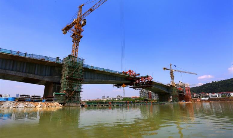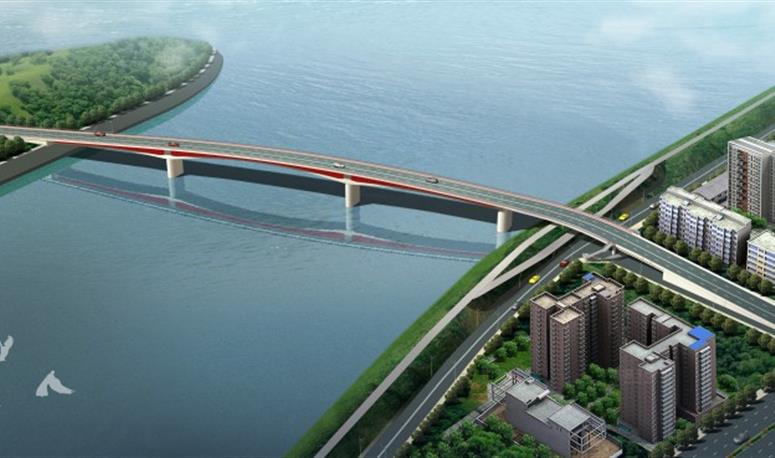虹云桥毗连桃花岛和沈家坝片区,,,,,,,为城南新区妄想的配套项目,,,,,,,起于桃花岛,,,,,,,上跨涪江、芙蓉路,,,,,,,终点接绵盐路,,,,,,,桥梁全长497米,,,,,,,其中主桥设计为83米+110米+83米三跨波形钢腹板一连梁,,,,,,,桥梁宽度18米,,,,,,,设计行车时速20公里。。。 。。。项目建成后将增强城南片区与沈家坝片区的交通联系,,,,,,,改善桃花岛片区的出行条件,,,,,,,缓解涪江三桥的交通压力。。。 。。。