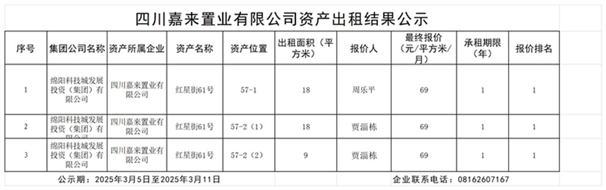 四川嘉来置业有限公司资产出租效果公示