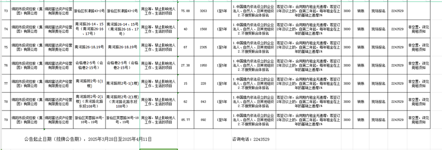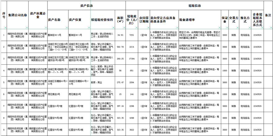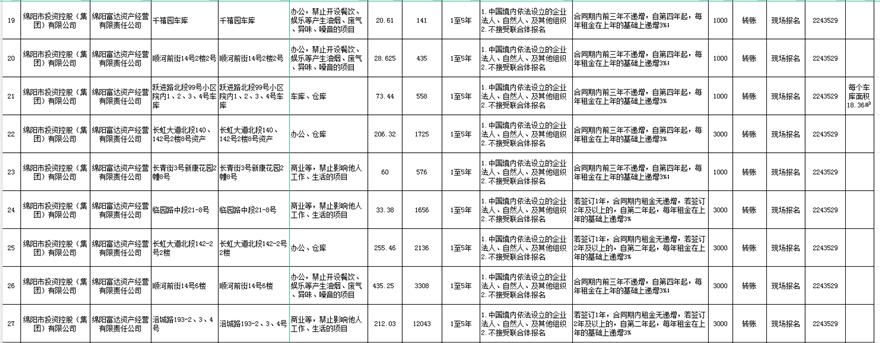 绵阳富达资产谋划有限责任公司出租通告