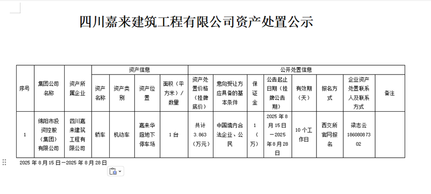 四川嘉来修建工程有限公司资产处置惩罚公示