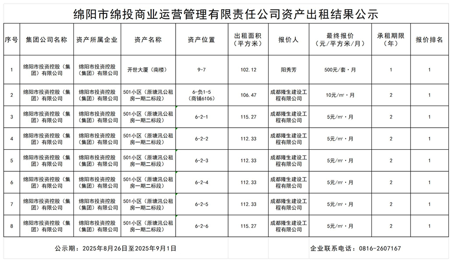 绵阳市BB电子·(china)有限公司官网商业运营治理有限责任公司资产出租效果公示