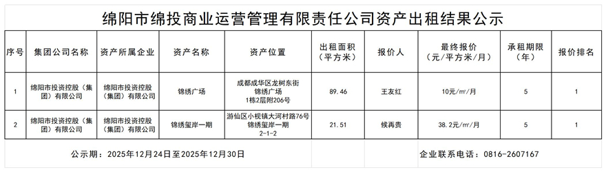 绵阳市BB电子·(china)有限公司官网商业运营治理有限责任公司资产出租效果公示
