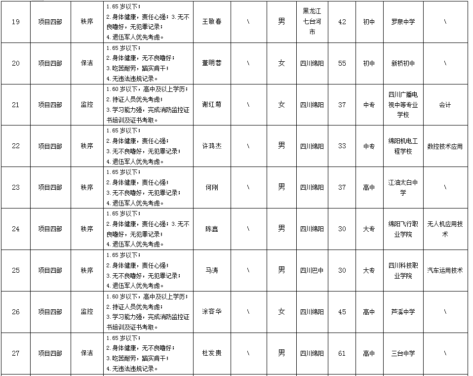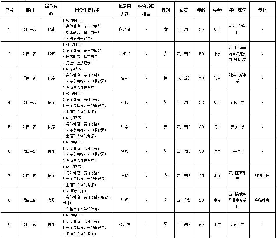 凭证绵阳市康来物业效劳有限公司宣布的招聘通告及招聘相关划定,,,,,,经面试等程序,,,,,,拟任命向兴容等同志到各项目部事情,,,,,,现予以公示,,,,,,详细情形如下: