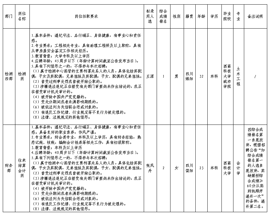【果真招聘】绵阳市建设工程质量检测中心有限责任公司关于招聘检测员等岗位拟任命职员的公示