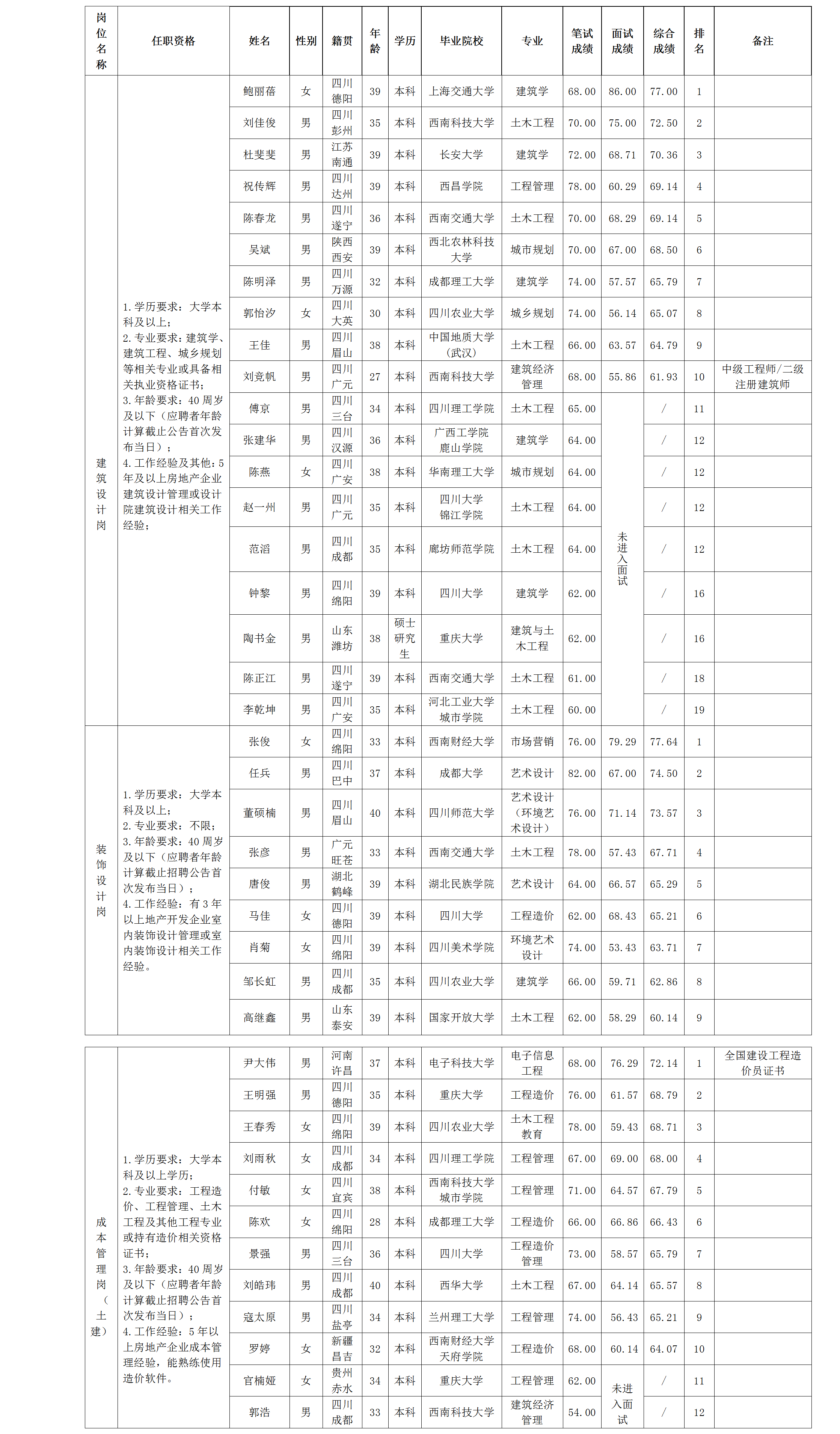 凭证绵阳市BB电子·(china)有限公司官网置地有限公司宣布的招聘通告及招聘相关划定,,,,,经笔试、面试等程序,,,,,现将笔试面试效果予以公示。。。 。。