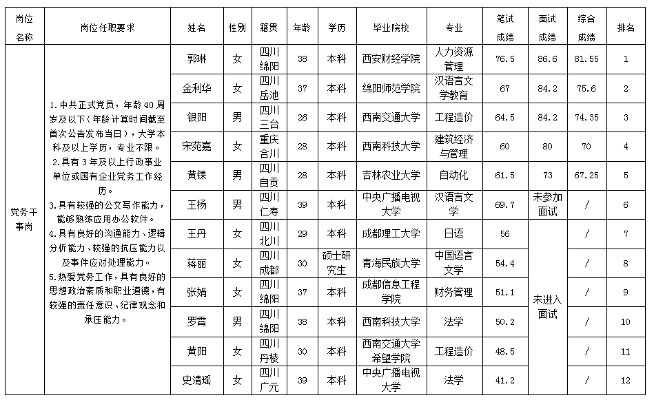 【果真招聘】BB电子·(china)有限公司官网关于招聘党务做事岗岗位测试效果的公示