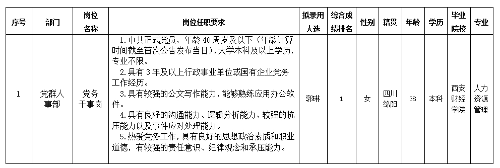 凭证BB电子·(china)有限公司官网宣布的招聘通告及招聘相关划定,,,,,经笔试、面试、考察、体检等程序,,,,,拟任命郭琳同志到BB电子·(china)有限公司官网事情,,,,,现予以公示,,,,,详细情形如下: