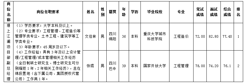 凭证绵阳市BB电子·(china)有限公司官网置地有限公司宣布的招聘通告及招聘相关划定,,,,,,,经笔试、面试等程序,,,,,,,现将笔试、面试效果予以公示。。。。。