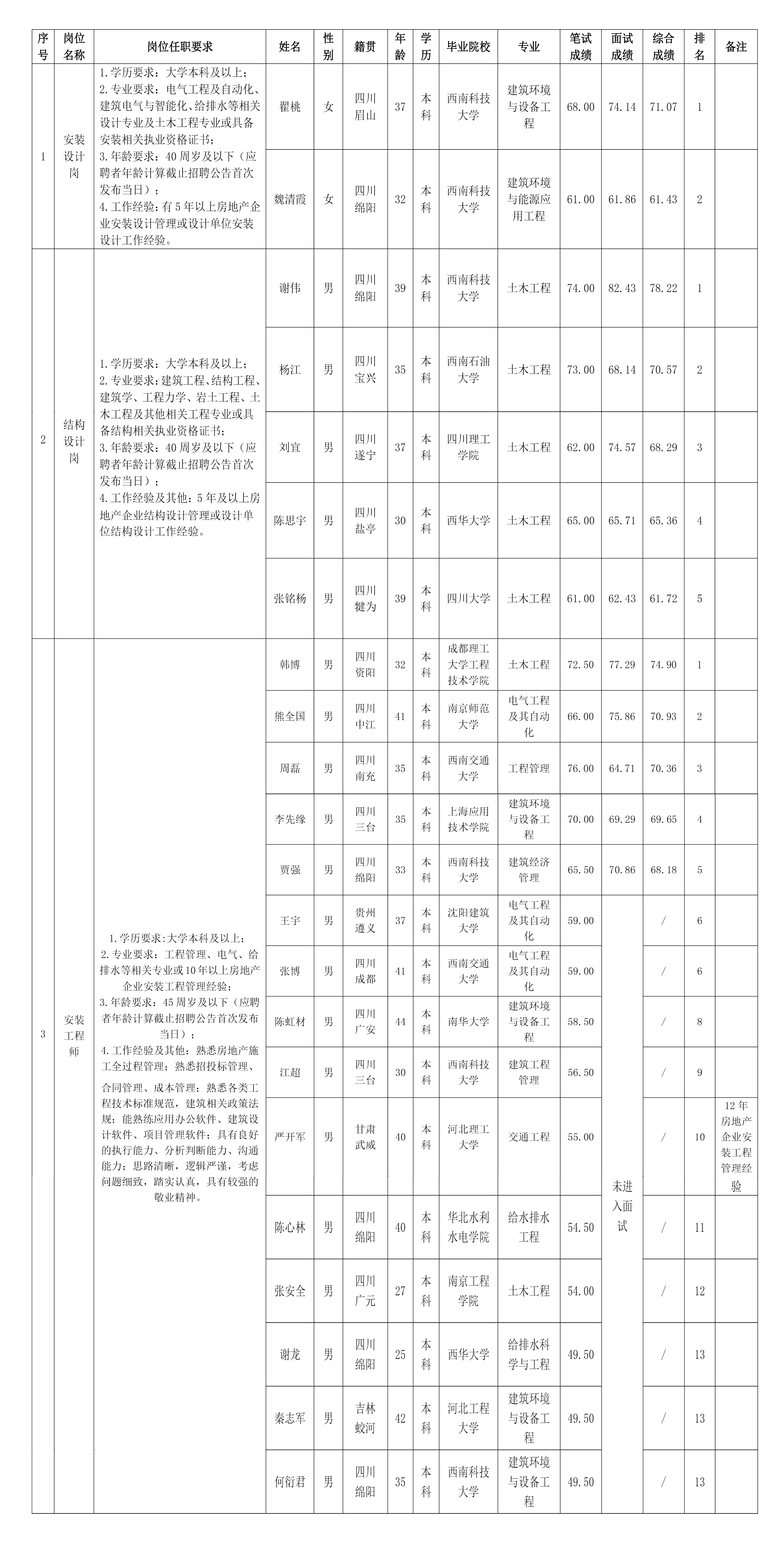 凭证绵阳市BB电子·(china)有限公司官网置地有限公司宣布的招聘通告及招聘相关划定,,,,,,,经笔试、面试等程序,,,,,,,现将笔试、面试效果予以公示。。。。。