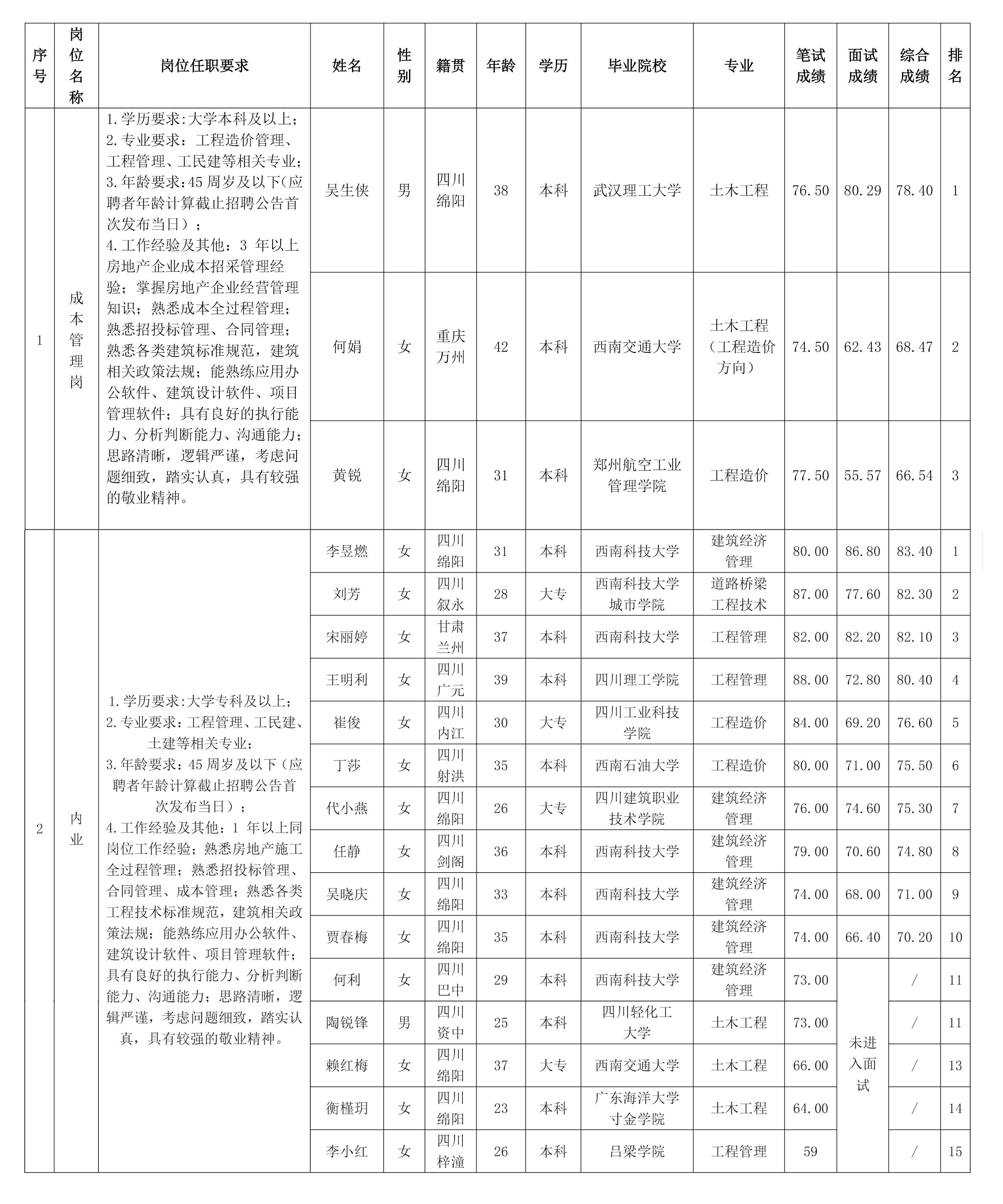凭证绵阳市BB电子·(china)有限公司官网置地有限公司宣布的招聘通告及招聘相关划定,,,,,,,经笔试、面试等程序,,,,,,,现将笔试、面试效果予以公示。。。。。。。。