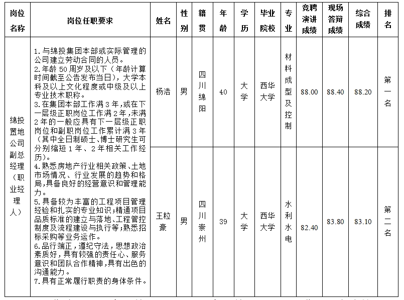 凭证BB电子·(china)有限公司官网集团《关于开展BB电子·(china)有限公司官网置地公司司理层副职(职业司理人)内部选聘的通告》(BB电子·(china)有限公司官网控司发〔2025〕119号)及招聘相关划定,,,,,,,经竞聘演讲、现场答辩等程序,,,,,,,现将竞聘效果予以公示。。。。。。。。