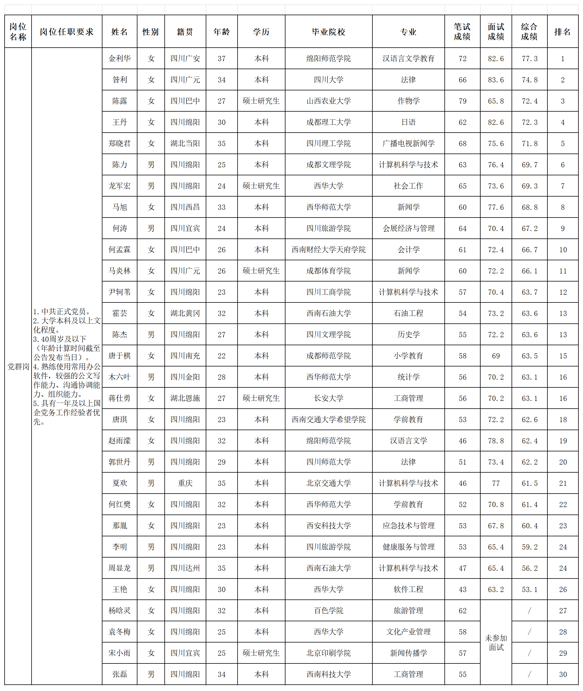 凭证四川越王楼文化撒播有限公司宣布的招聘通告及招聘相关划定,,,,,经笔试、面试等程序,,,,,现将笔试(面试)效果予以公示。。。。。。。。