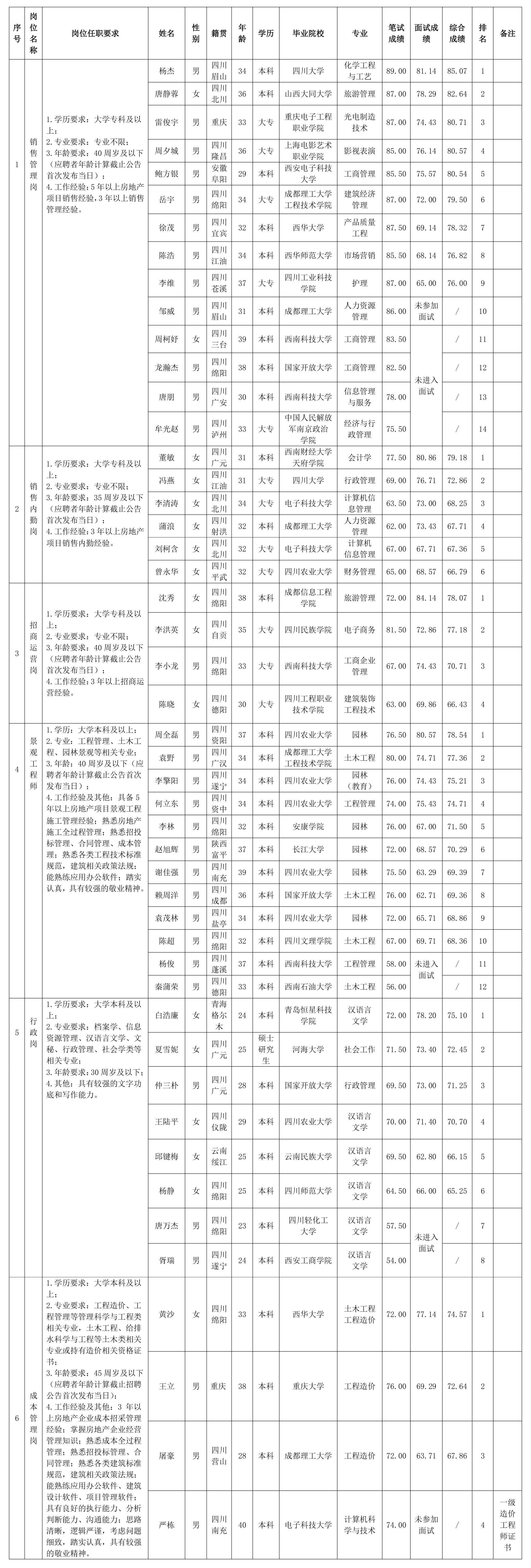 凭证绵阳市BB电子·(china)有限公司官网置地有限公司宣布的招聘通告及招聘相关划定,,,,,经笔试、面试等程序,,,,,现将笔试、面试效果予以公示。。。。。。。。