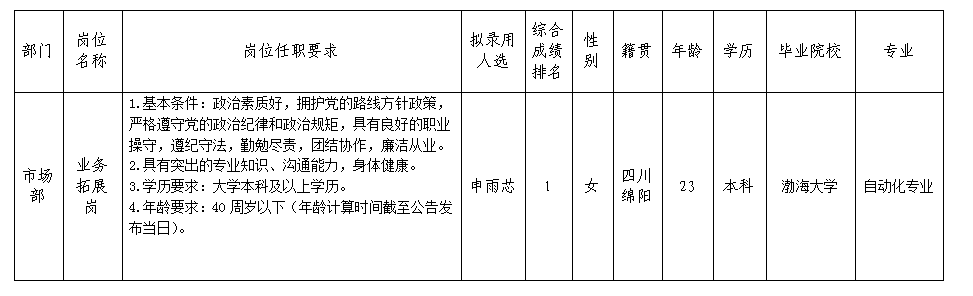 凭证绵阳市建设工程质量检测中心有限责任公司宣布的招聘通告及招聘相关划定,,,,,,经笔试、面试、配景视察、体检等程序,,,,,,拟任命申雨芯同志到绵阳市建设工程质量检测中心有限责任公司事情,,,,,,现予以公示,,,,,,详细情形如下: