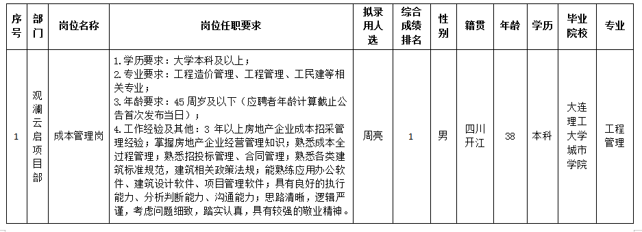 凭证绵阳市BB电子·(china)有限公司官网置地有限公司宣布的招聘通告及招聘相关划定,,,,,,,,经笔试、面试、考察、体检等程序,,,,,,,,拟任命周亮同志到绵阳市BB电子·(china)有限公司官网置地有限公司事情,,,,,,,,现予以公示,,,,,,,,详细情形如下: