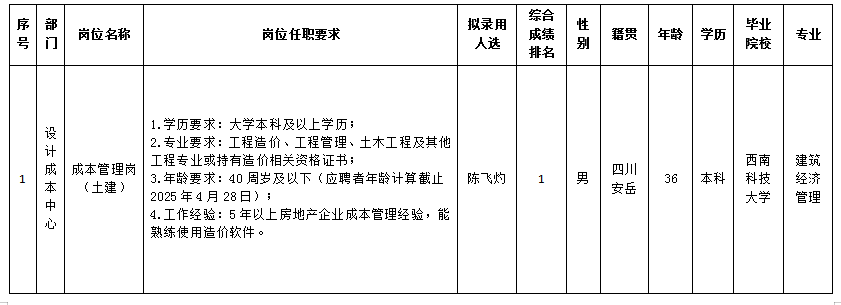 凭证绵阳市BB电子·(china)有限公司官网置地有限公司宣布的招聘通告及招聘相关划定,,,,,,,经笔试、面试、考察、体检等程序,,,,,,,拟任命陈飞灼同志到绵阳市BB电子·(china)有限公司官网置地有限公司事情,,,,,,,现予以公示,,,,,,,详细情形如下: