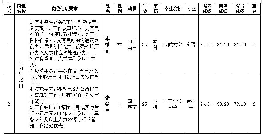 【内部竞聘】绵阳BB电子·(china)有限公司官网工业投资有限公司关于BB电子·(china)有限公司官网内部选聘人力行政岗位测试效果的公示