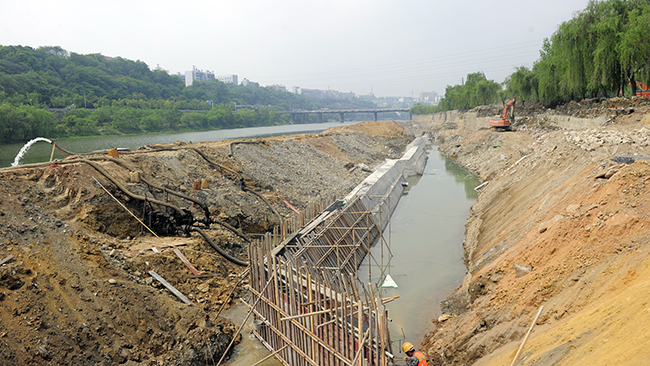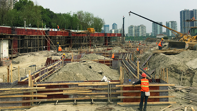 5月1日,,,,,,,绵阳港三江湖码头建设项目现场仍是一片忙碌。。。。。。50余台施工机械、100余名施工职员在各自岗位上忙碌着。。。。。。现阶段正同步推进衡宇修建工程和码头工程。。。。。。其中,,,,,,,餐饮码头希望最快,,,,,,,挡墙以及水下结构工程已完成300米。。。。。。按现在进度,,,,,,,五一时代已完成各码头三分之二的前沿挡墙施工。。。。。。五一节后,,,,,,,紧接着举行回填和面层结构施工。。。。。。