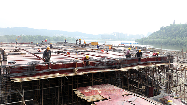 “五一”小长假时代,,,,,,,BB电子·(china)有限公司官网集团全力推进绵阳港三江湖码头建设。。。。。。节日时代,,,,,,,为包管施工进度,,,,,,,凭证施工妄想,,,,,,,项目施工接纳 “两班倒”作业,,,,,,,全员在岗并全力按妄想施工。。。。。。
