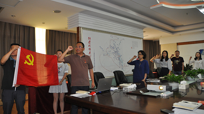 5月5日下昼,,,,,直属第二党支部开展了“守初心、葆本色”主题党日运动,,,,,集团党委副书记、纪委书记焦军与支部党员一道重温入党誓词。。。。。。