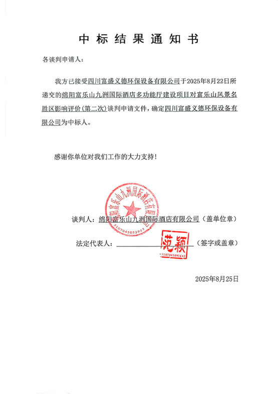 绵阳富乐山九洲国际旅馆多功效厅建设项目对富乐山景物胜景区影响评价(第二次)中标效果通知