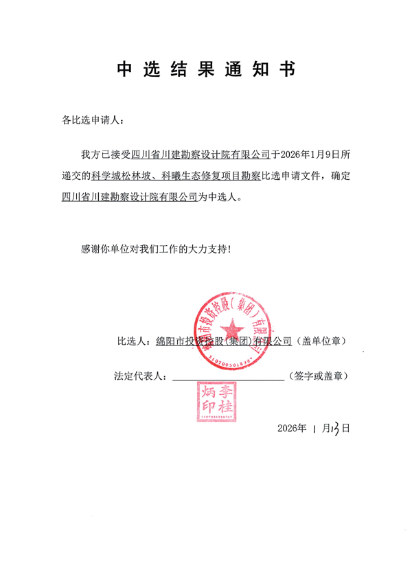 科学城松林坡、科曦生态修复项目勘探中选效果通知