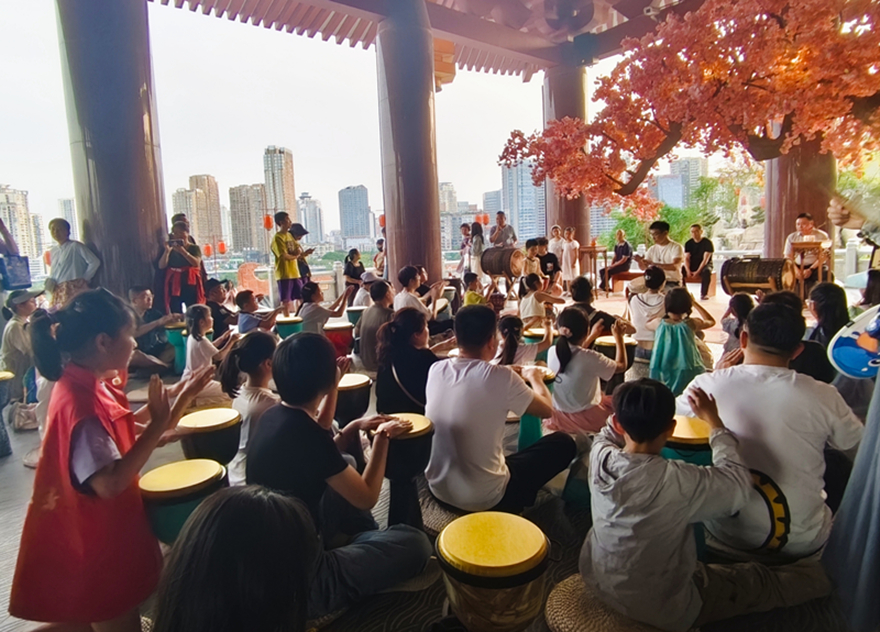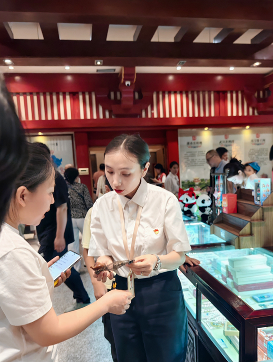 “五一”时代,,,,,,景区在龟山打造“非遗工坊”,,,,,,推出“漆扇制作—草编体验—诗词题写—场景打卡”一体化体验链,,,,,,可加入、可带走、可撒播,,,,,,突破“静态展示”古板模式,,,,,,通过“活态传承+互动赋能”推动非遗文化创立性转化,,,,,,天天吸引逾千人次游客加入。。。。。