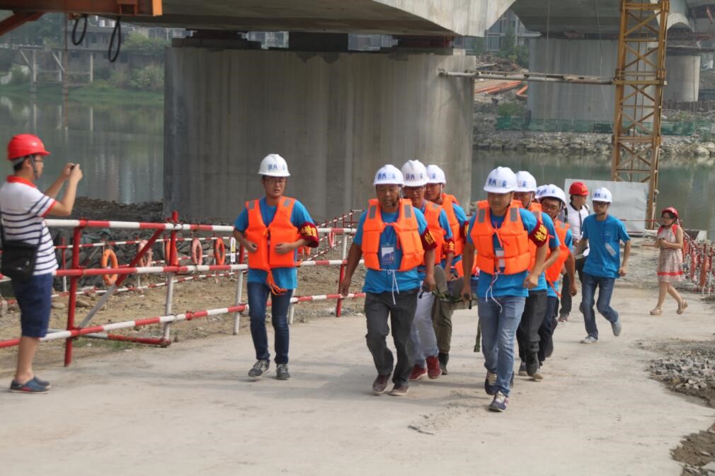 上午10时, ,,,,现场模拟清静员接上级主管部分紧迫通知涪江上游一连大暴雨, ,,,,预计两小时洪峰抵达虹云桥施工区域, ,,,,施工现场各工种、各责任部分按防汛应急预案的要求开展防汛处置惩罚及应抢救援事情, ,,,,10分钟后, ,,,,各项防汛事情准备完毕, ,,,,现场指定区域留下巡查员, ,,,,所有其他人所有撤离施工区域演练竣事。 。。。。。。。随后, ,,,,参会职员对项目落实63号文件及现场清静治理履历、标准化施工宣传展板举行了观摩学习。 。。。。。。。