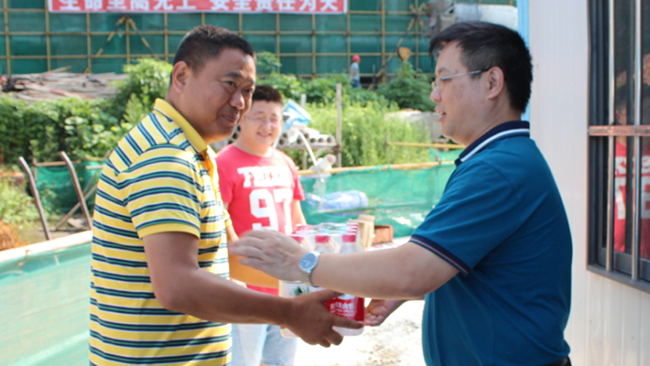慰问组每到一处,,,,,都对现场工人们体现问候,,,,,并向他们不畏高温、坚守岗位的辛勤事情体现谢谢,,,,,嘱咐他们一定要把清静放在第一位,,,,,合理安排事情时间,,,,,注重劳逸团结。。。。。。。同时,,,,,要求公司相关部分神系一线,,,,,做好防暑事情,,,,,起劲应对高温天气给事情带来的难题与未便,,,,,确保公司各项事情有条不紊地开展。。。。。。。