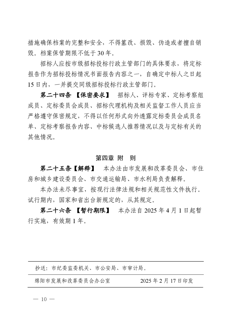 绵阳市依法必需招标国家投资工程建设项目试点评定疏散机制暂行步伐(2025.2.28宣布)