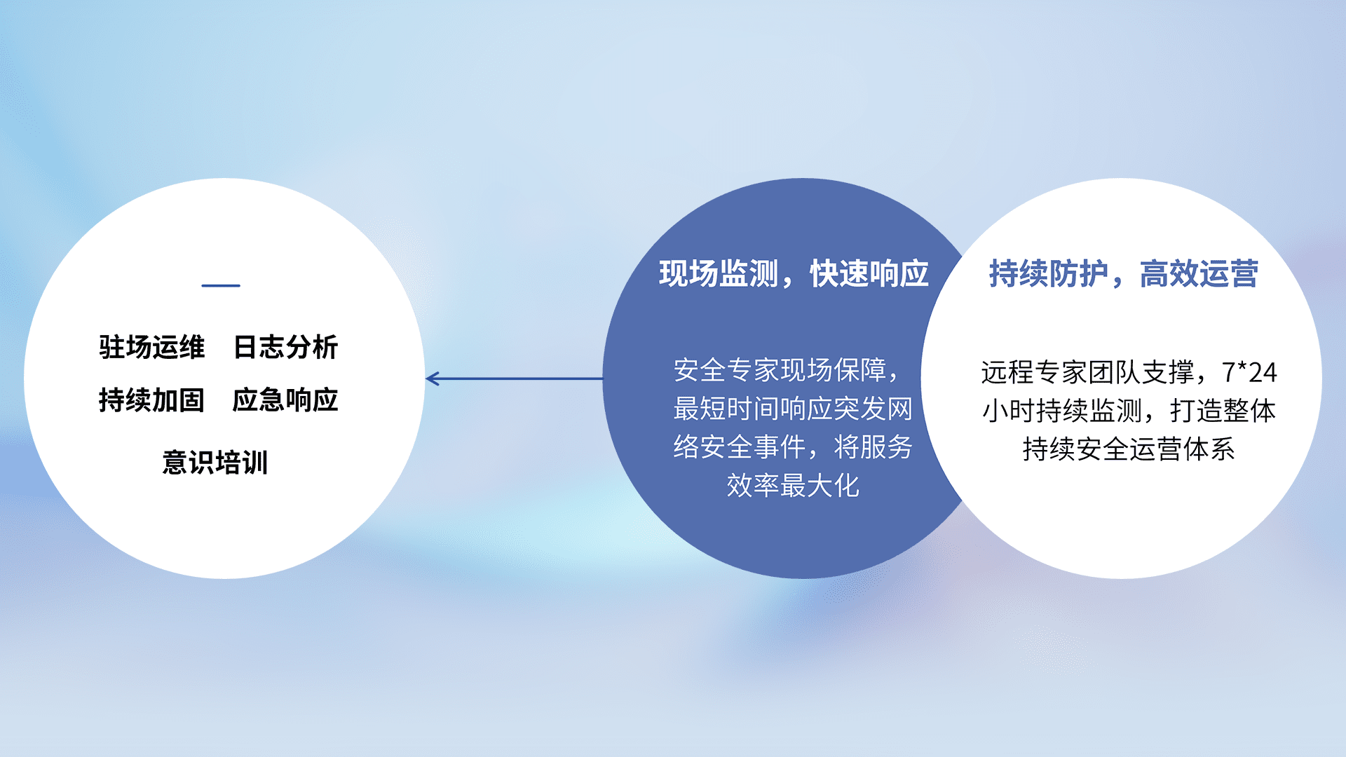 针对客户行业特性,,,,提供专属的一站式安全管理服务,,帮助客户全面感知网络空间威胁,,通过安全专家的线上、、、线下防护支持,,实现风险闭环,,,,将安全保障常态化,,,为客户打造常态化安全运维运营服务。。。。